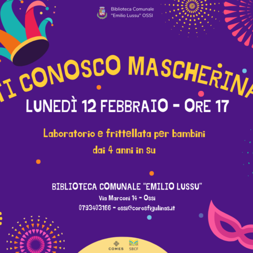 News Ti conosco mascherina! Arriva anche nella Biblioteca di Ossi la festa più colorata dell’anno! 5 Febbraio 2024