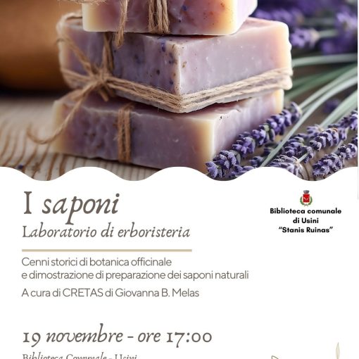 Attività Eventi News Usini: In biblioteca… profumo di saponi! Tra erbe officinali e profumi naturali 4 Novembre 2025