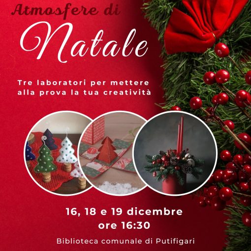 News PUTIFIGARI: NATALE IN BIBLIOTECA Come da tradizione, aspettando il Natale, la biblioteca organizza alcune attività: 5 Dicembre 2025