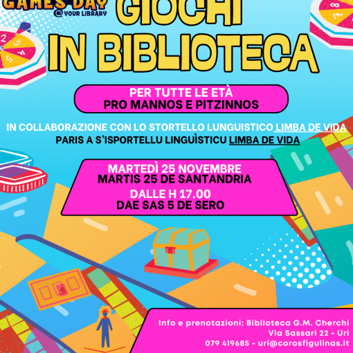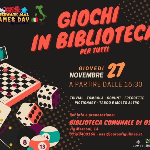 Arriva a Ossi l’International Games Day @Your library, la giornata mondiale del gioco in biblioteca, una serata tutta dedicata alle sfide su giochi da tavolo per piccoli e grandi giocatori,…
