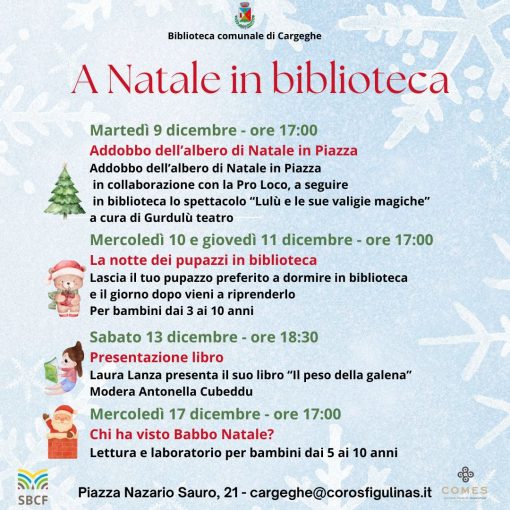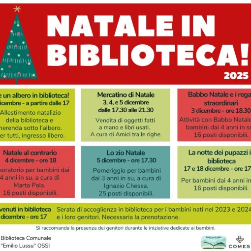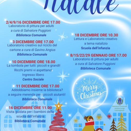 La Biblioteca Comunale Andrea Loriga di Codrongianos è felice di invitarvi al primo natale nella nuova sede… sarà un mese ricco di creatività, colori e magia natalizia!