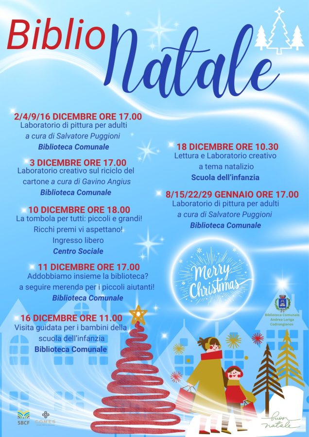 La Biblioteca Comunale Andrea Loriga di Codrongianos è felice di invitarvi al primo natale nella nuova sede… sarà un mese ricco di creatività, colori e magia natalizia!